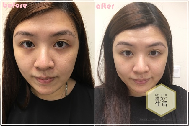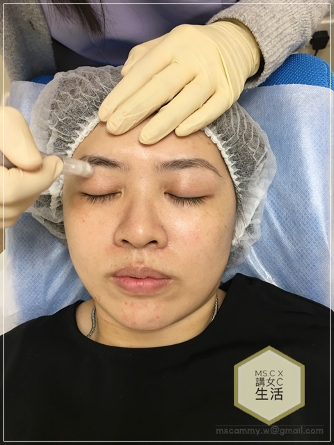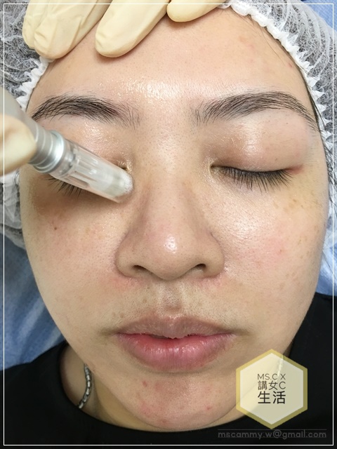治療師會一邊進行微針時,一邊細心詢問針頭會否帶來太大痛楚。其實整個療程期間不會帶來太大的痛感,感覺上有類似做海藻矽針微微刺刺地的感覺。先做完一邊的效果,看落眼肌周邊都較為飽滿緊緻,即時見到提升效果。